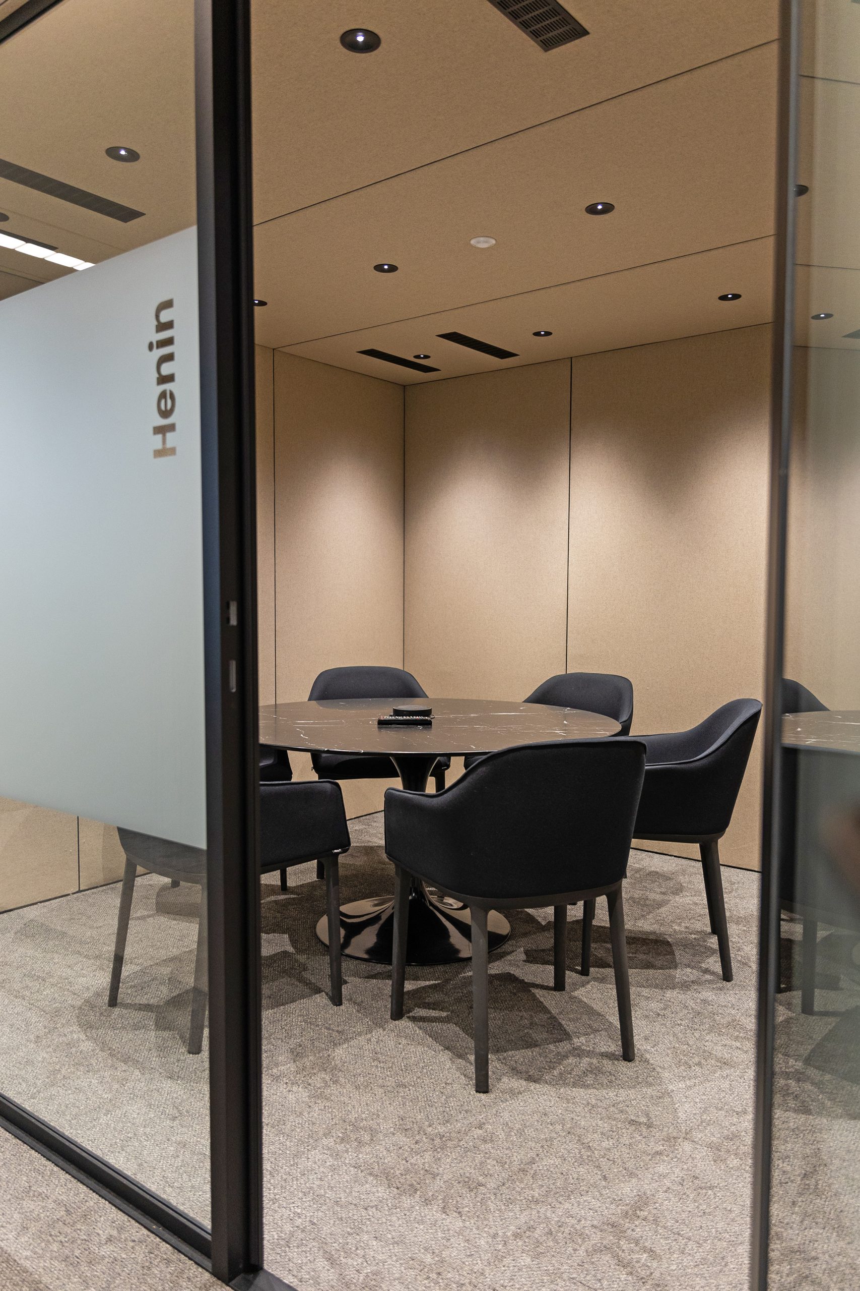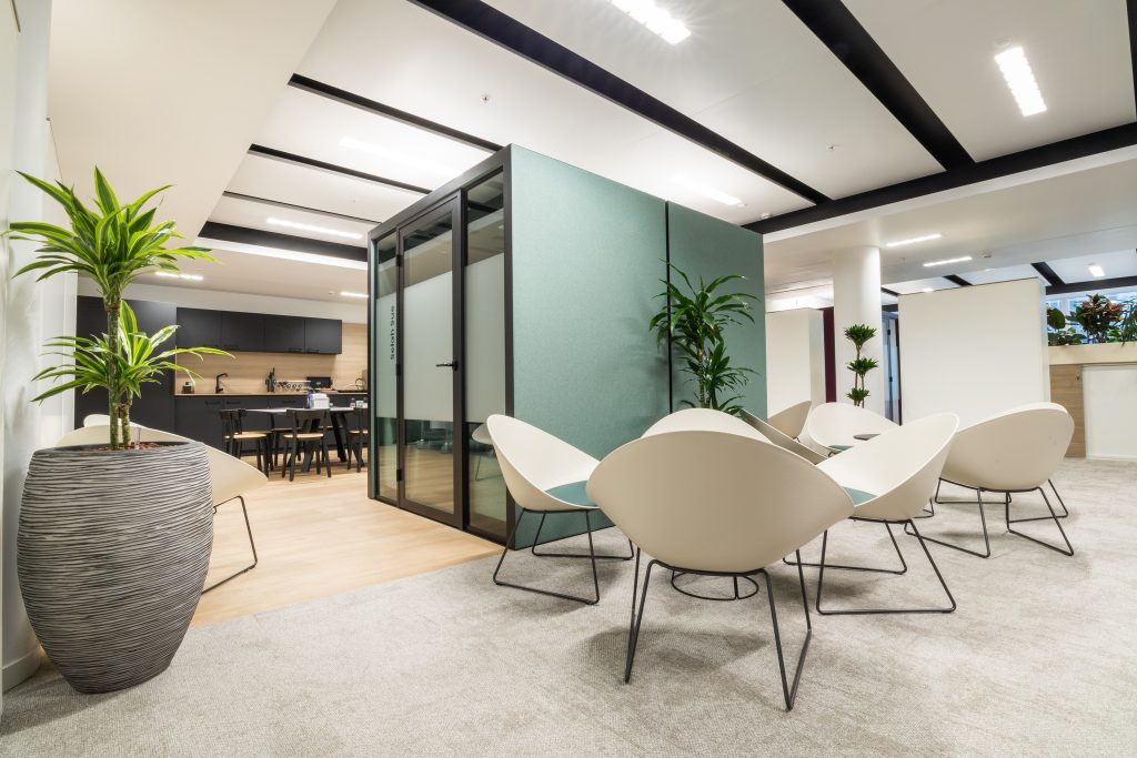 Akoestische oplossingen door Deblick: Voor de akoestische invulling schakelde Pami haar partner Deblick in. Vanuit de productiefaciliteit in Eindhoven ontwikkelde Deblick akoestische cubes en booths die bijdragen aan rust en concentratie binnen de open werkomgeving.